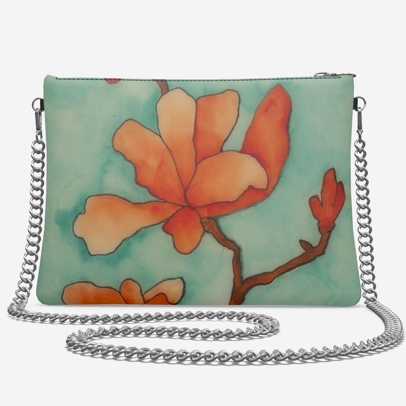 This beautiful designer crossbody bag is imprinted with Helen K. Tindel’s Baraka Blooms.