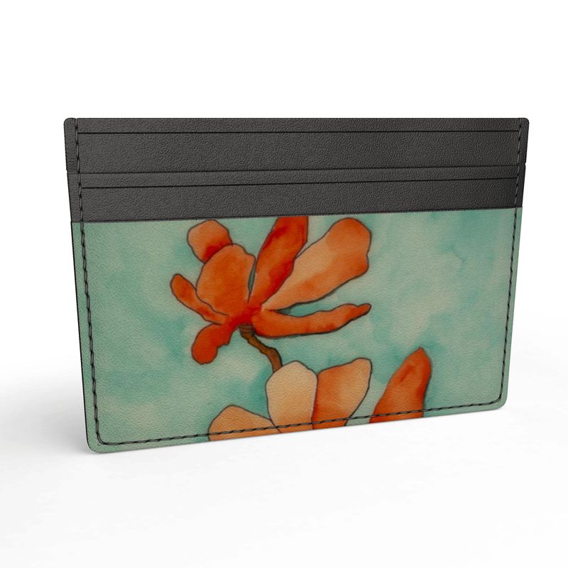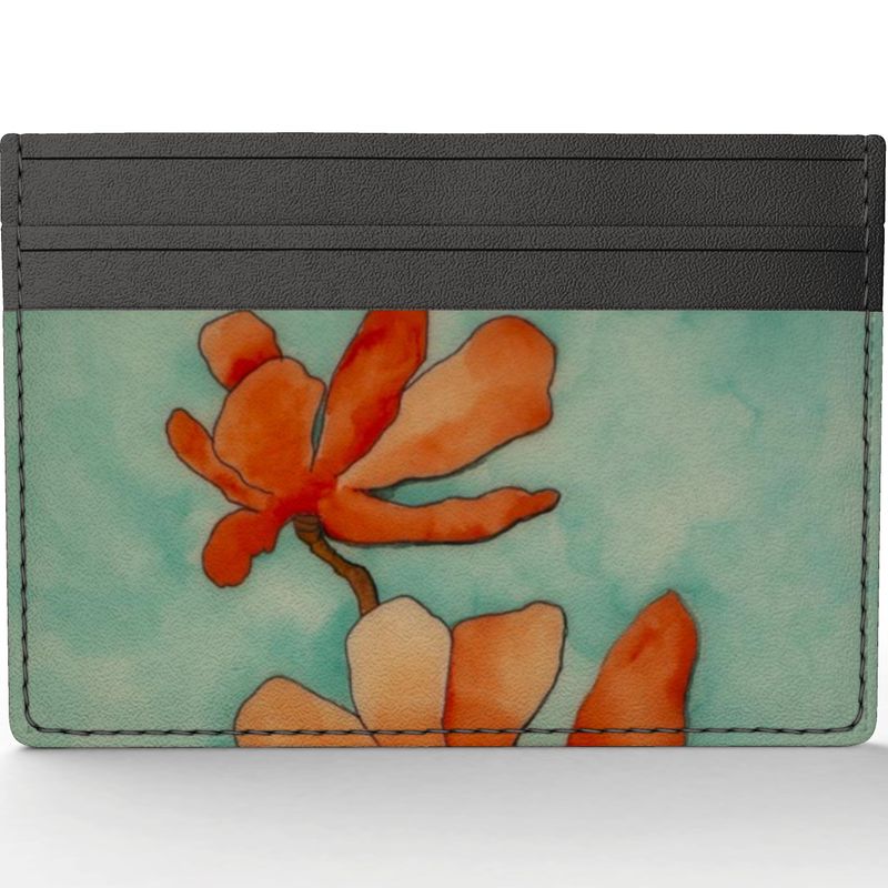 This custom leather card holder is imprinted with Helen K. Tindel’s Baraka Blooms.