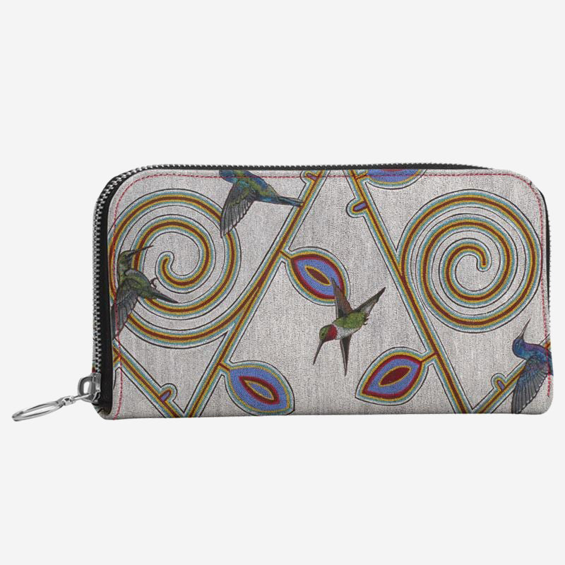 This custom leather wallet is imprinted with Starr Hardridge’s Feathered Garden.