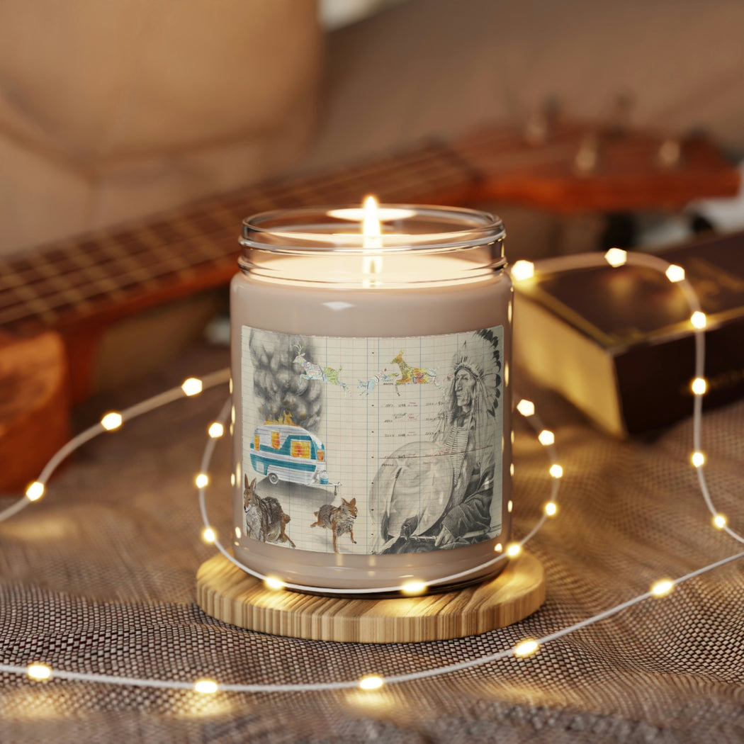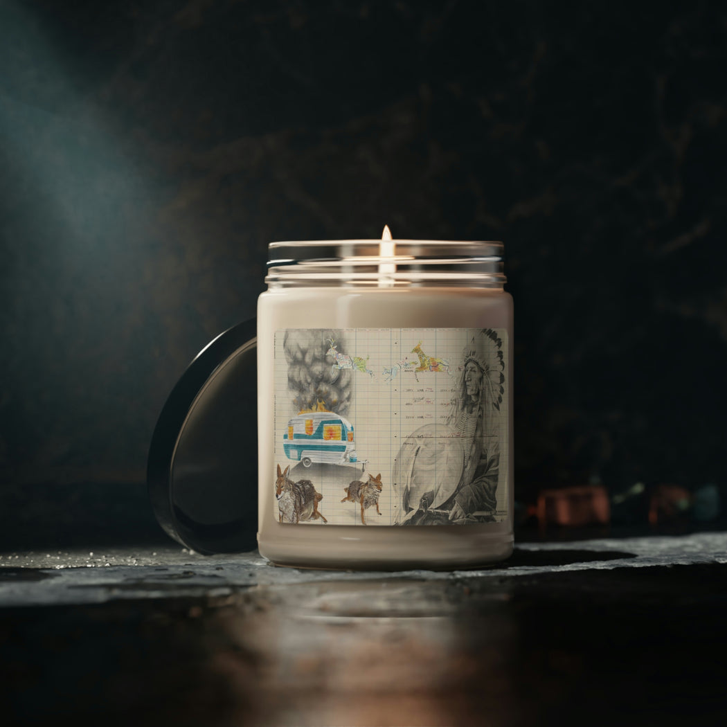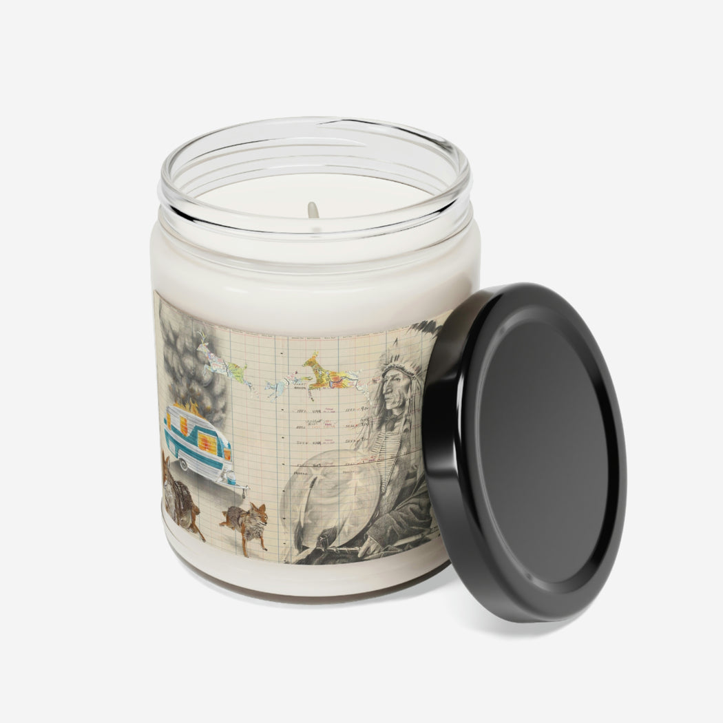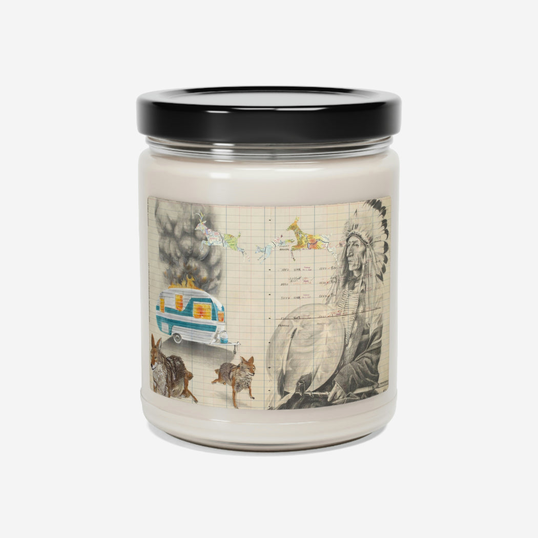 Packed with immersive aromas, these scented candles are made with 100% natural soy wax blend. Printed with Chris Pappan's The Fire Within.