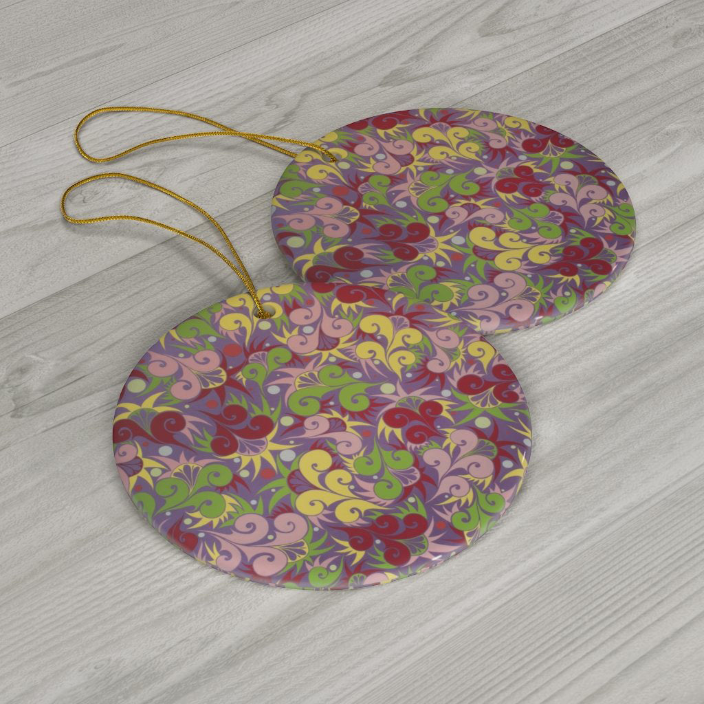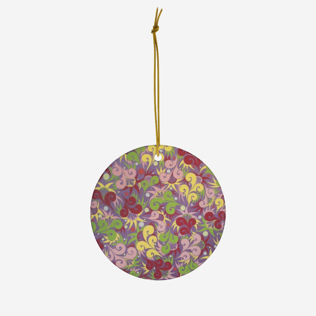 This custom-made ceramic ornament can be the perfect heirloom to use year after year, printed with imagery by Harlan Reano.