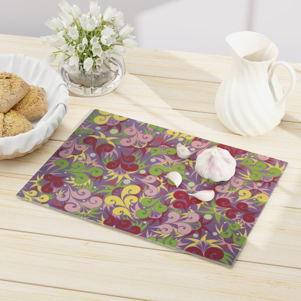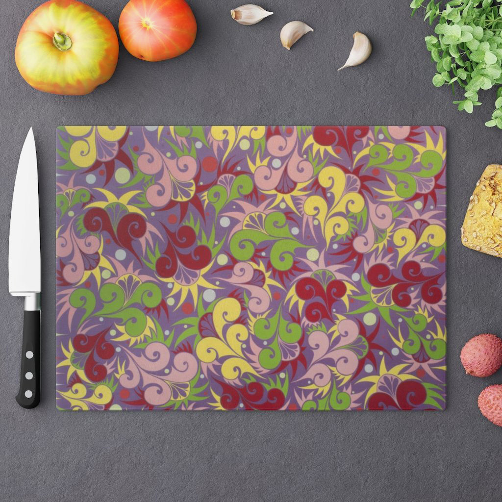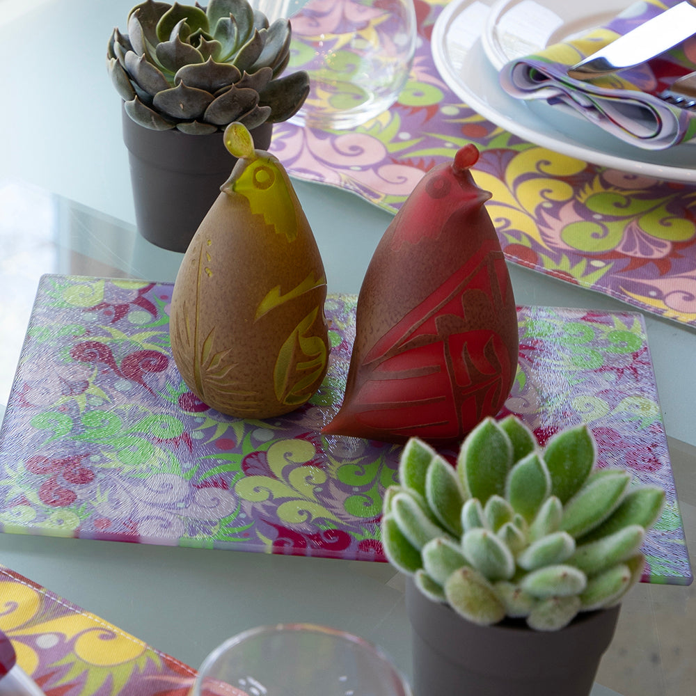 This glass serving tray is perfect for serving your fine gourmet cheeses and crackers.  A wonderfully unique addition to any chef’s arsenal with imagery by Harlan Reano.