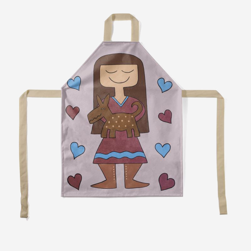 Aprons are handmade for kids and printed with Jody Naranjo's Just Me and My Dog