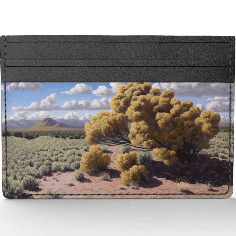 This custom leather card holder is imprinted with Doug West’s Chamisa Temple.