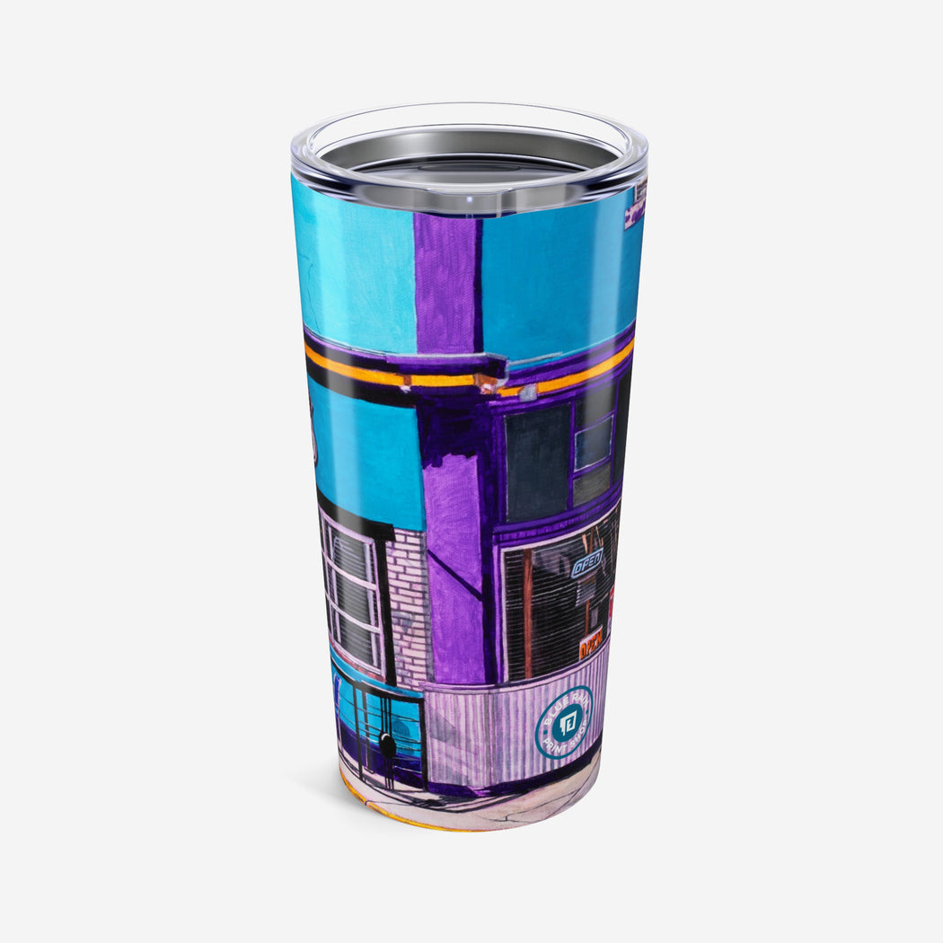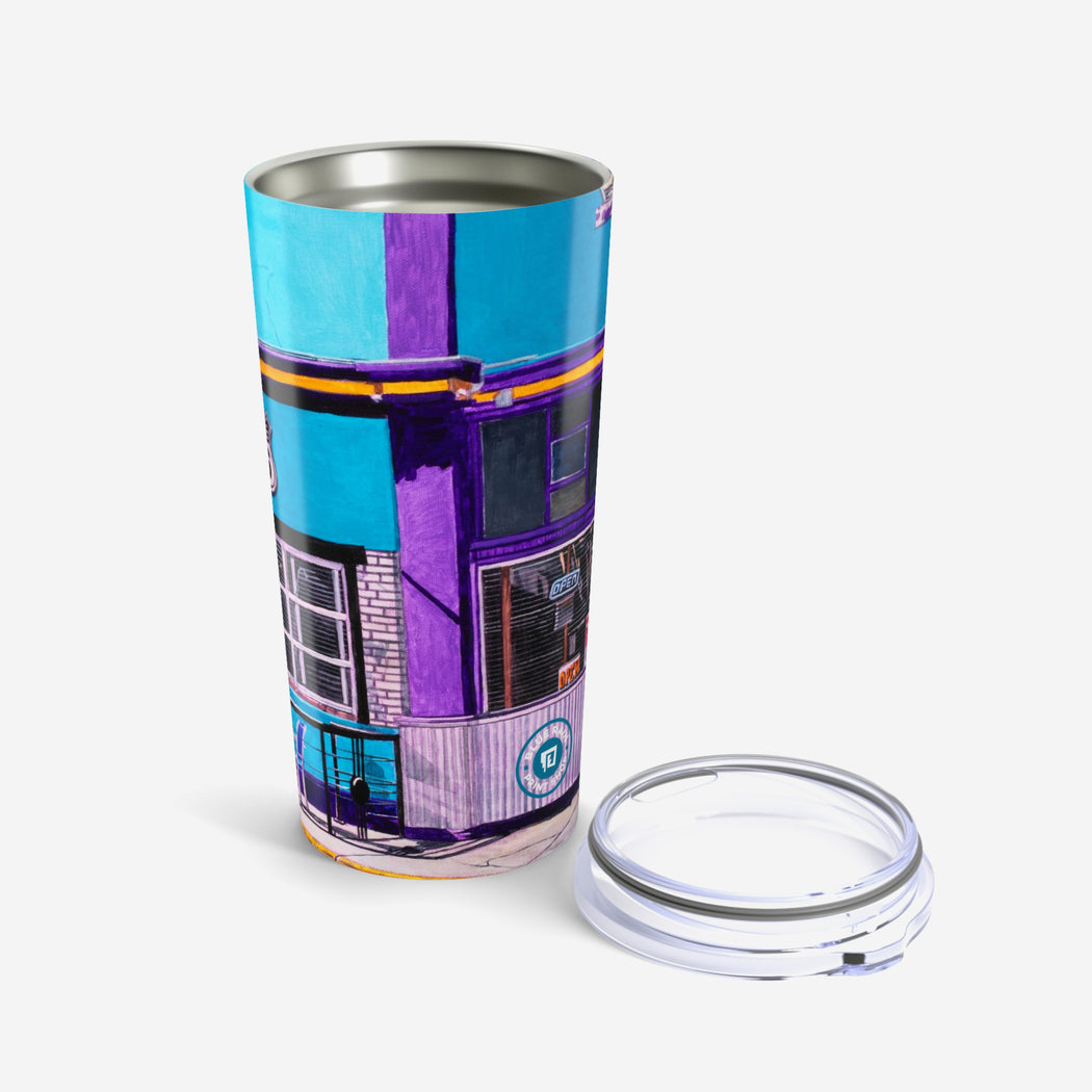 This 20oz tumbler is imprinted with Tony De Luz's Lindy's Corner. stainless travel-size tumbler, it's vacuum-insulated and built to last. It's perfect to express your style.