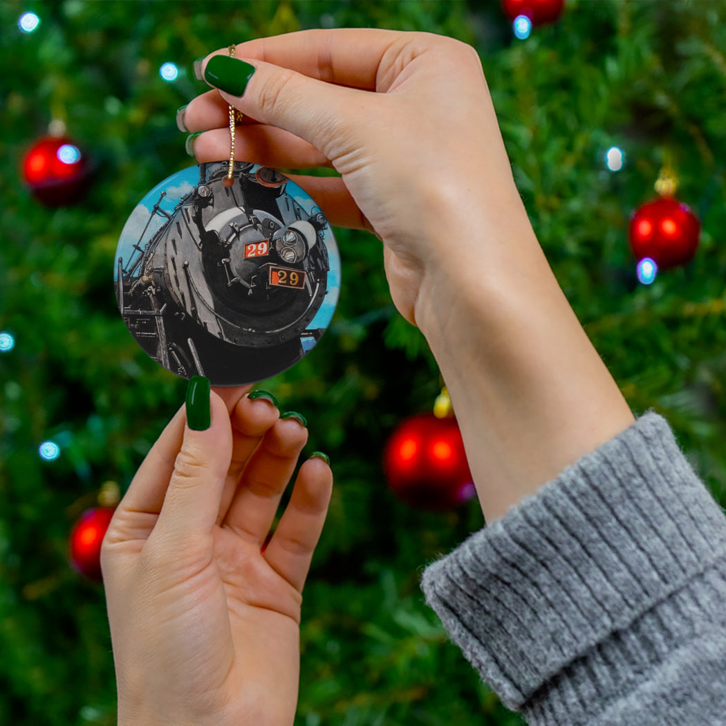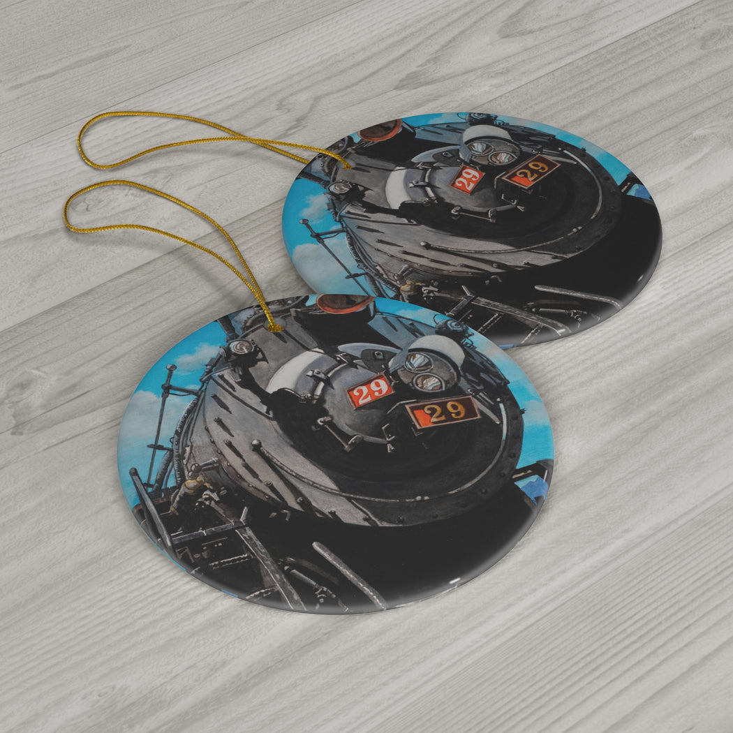 This custom-made ceramic ornament can be the perfect heirloom to use year after year, printed with Tony De Luz's Old 29.