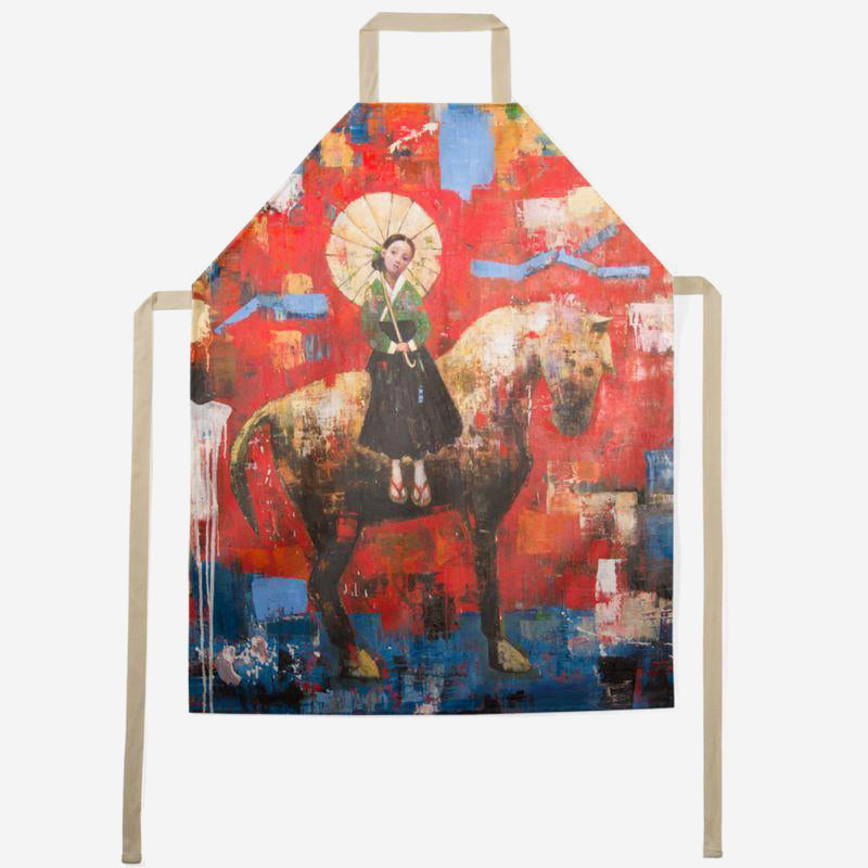 Aprons are handmade and printed with Rimi Yang’s Ride In Sunset.