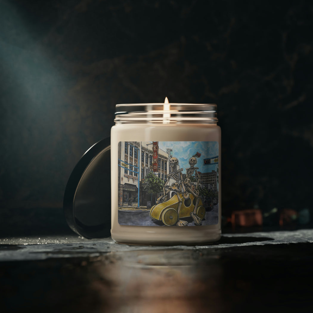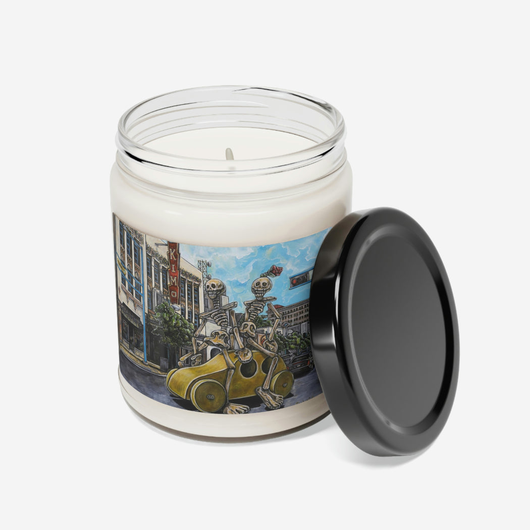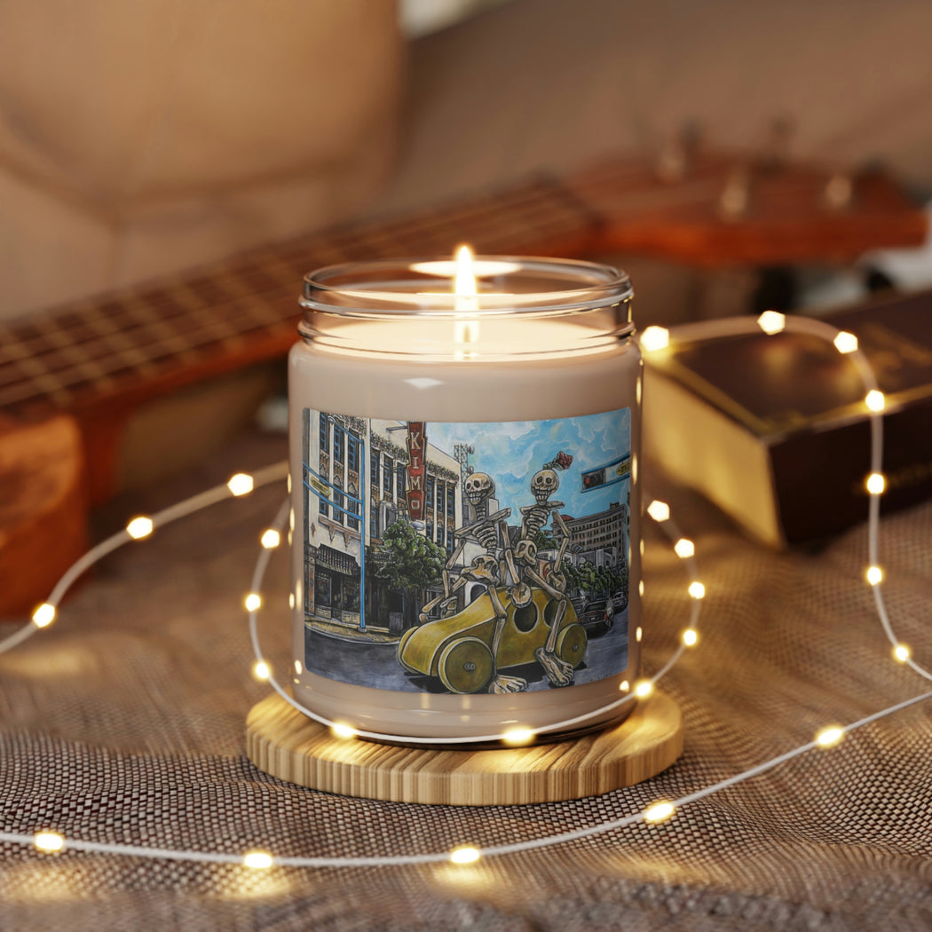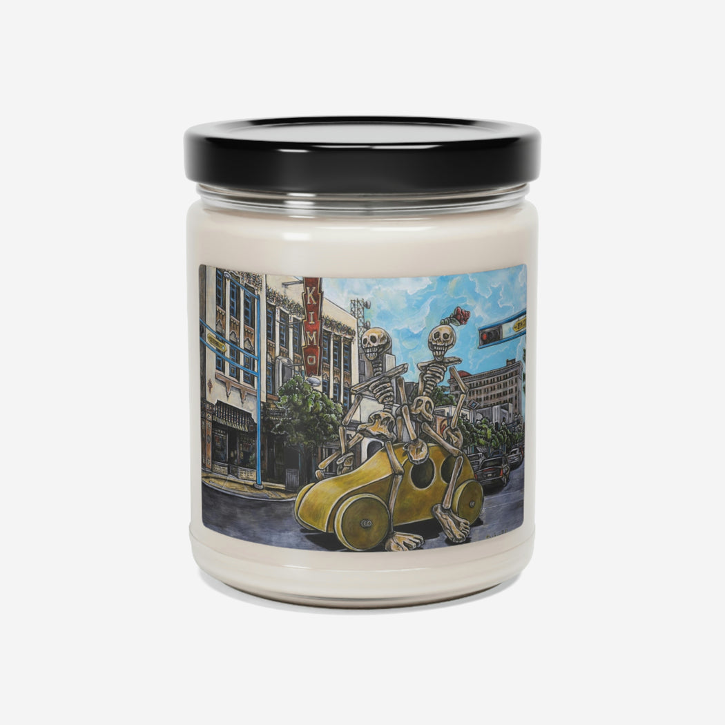 Packed with immersive aromas, these scented candles are made with 100% natural soy wax blend. Printed with Joshua Franco's I Love Going On Road Trips With You.