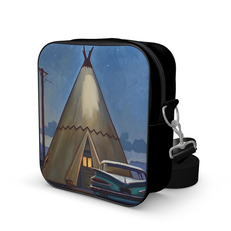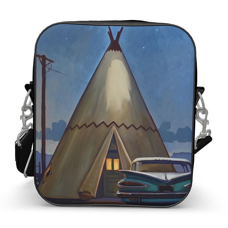 Classic leather messenger bag imprinted with Dennis Ziemienski’s WigWam Nocturne.