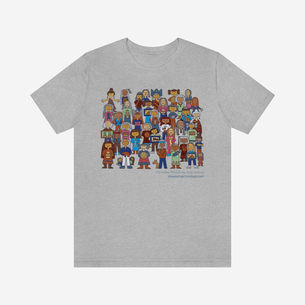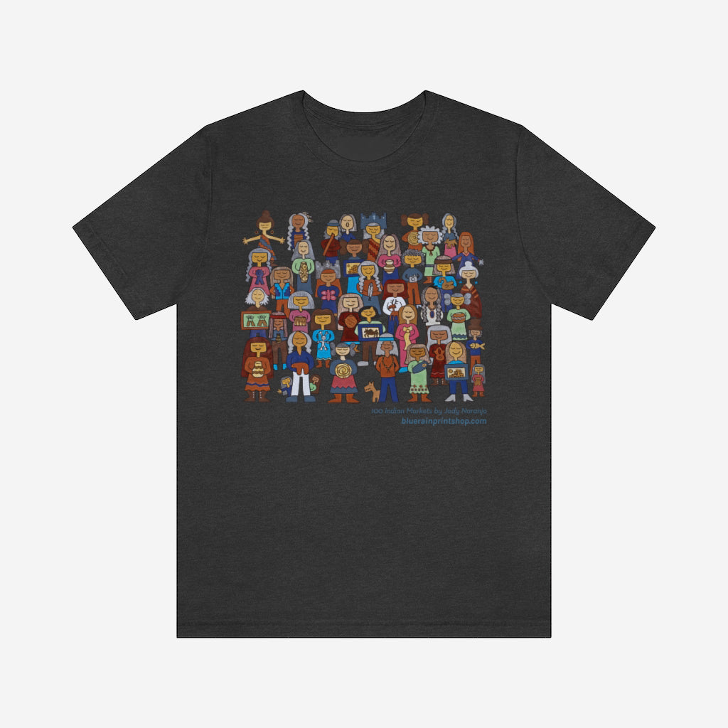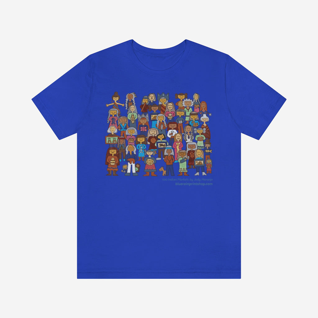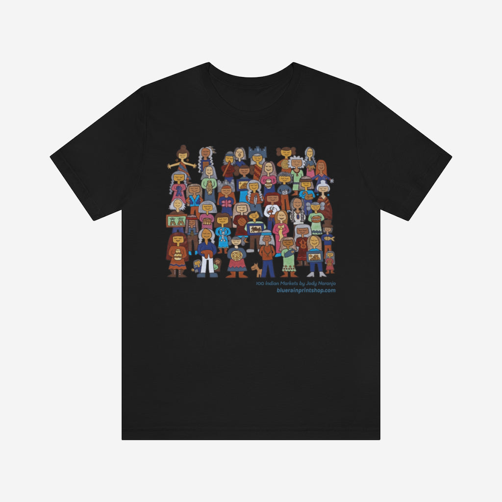 This classic unisex jersey tee fits like a well-loved favorite. Printed with Jody Naranjo's 100 Indian Markets.