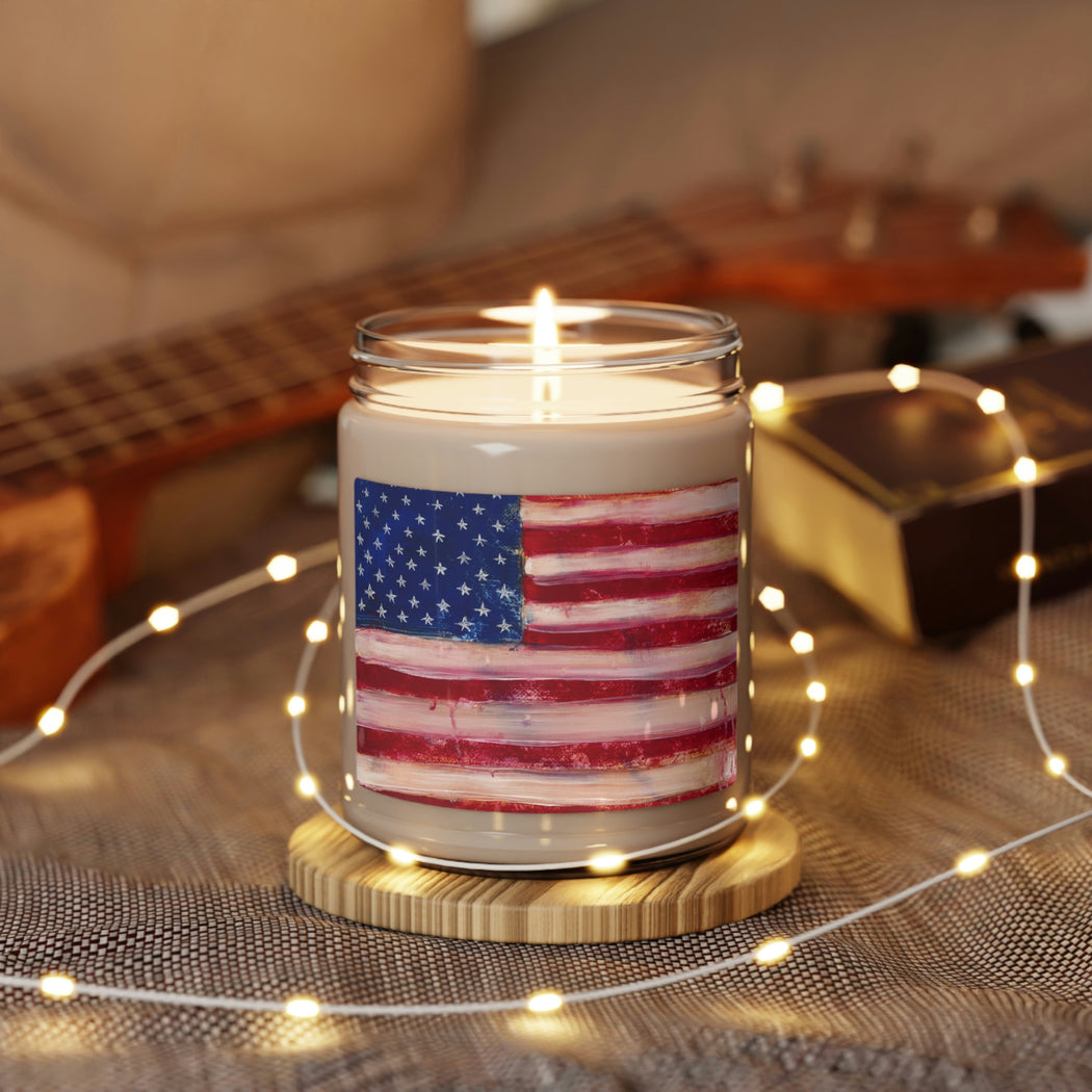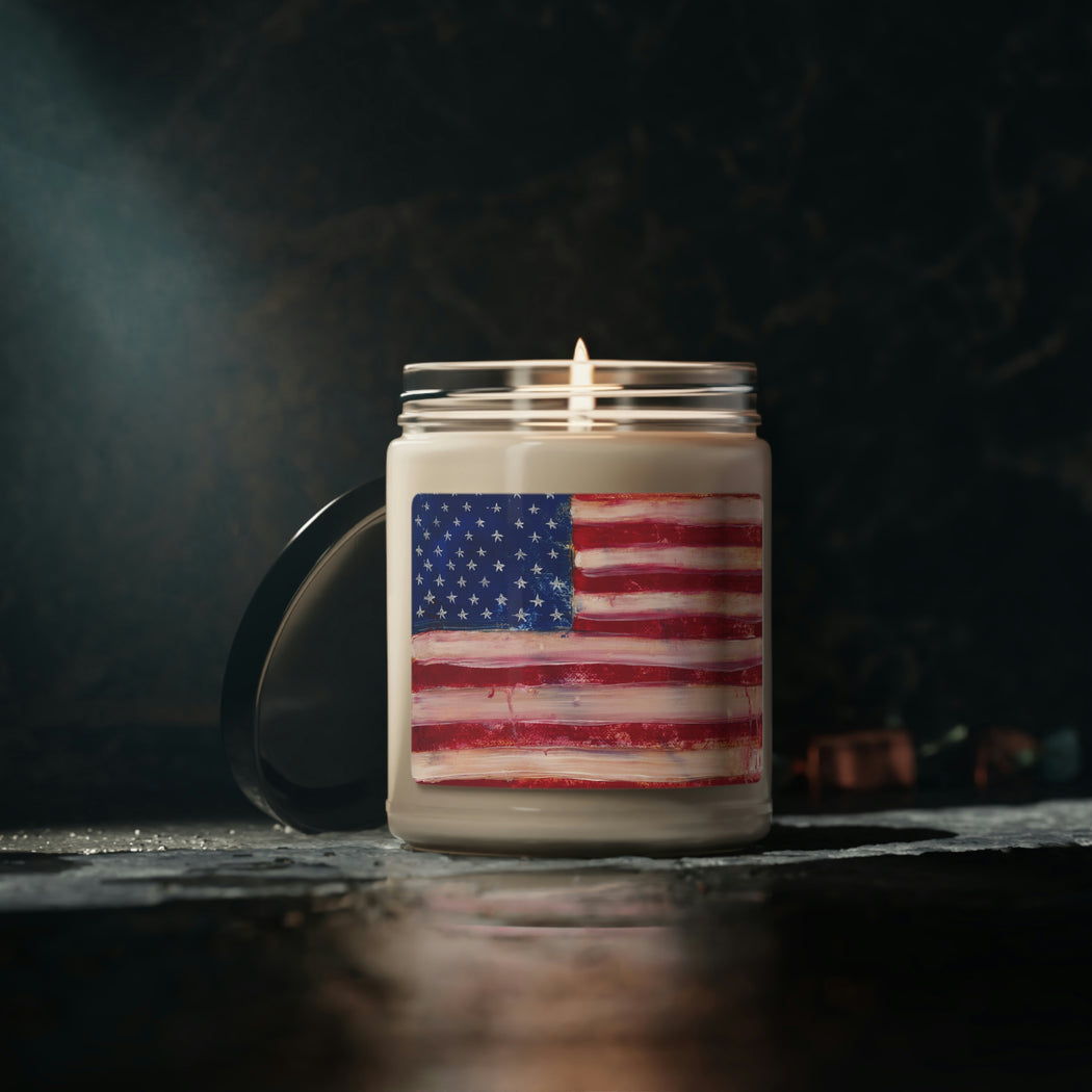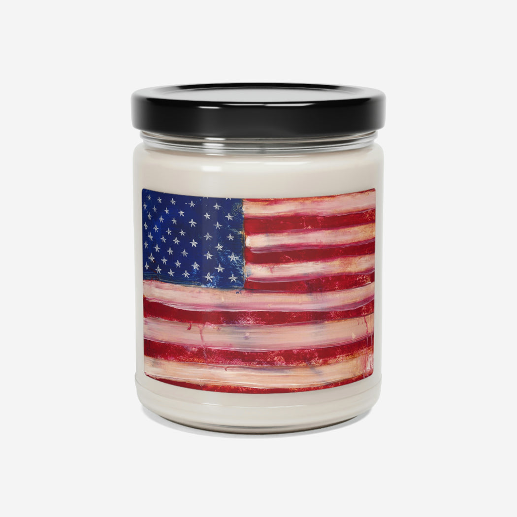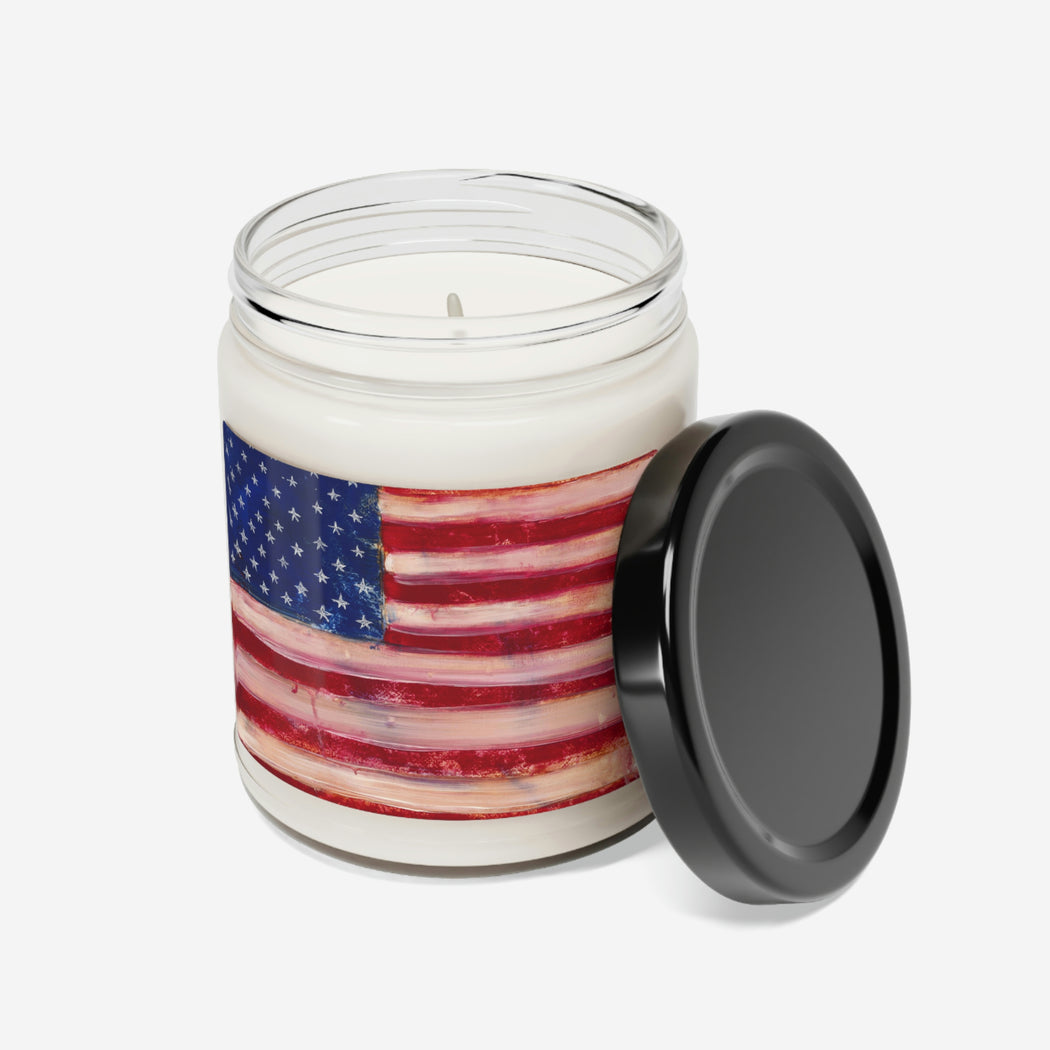 Packed with immersive aromas, these scented candles are made with 100% natural soy wax blend.  Printed with Larry D. Blissett's US Flag.