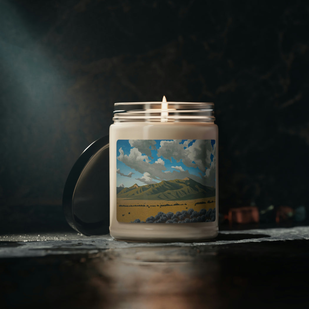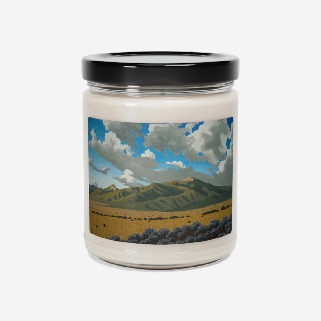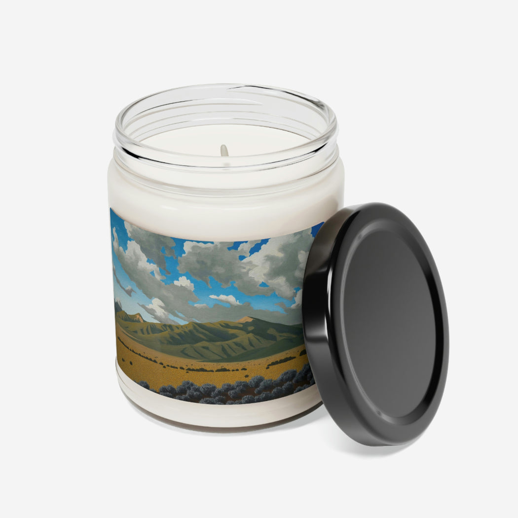 Packed with immersive aromas, these scented candles are made with 100% natural soy wax blend. Printed with Doug West's Way North to Taos.