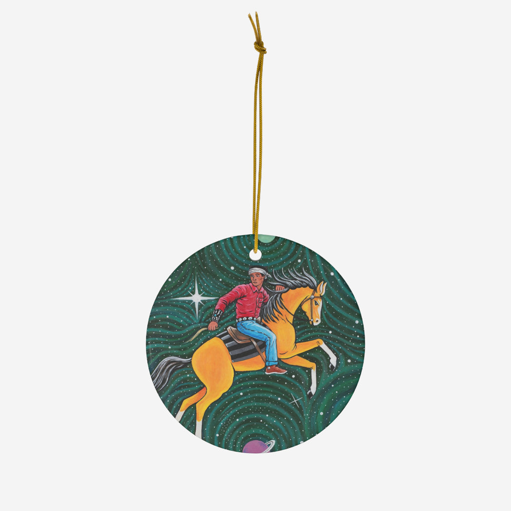 This custom-made ceramic ornament can be the perfect heirloom to use year after year, printed with Ryan Singer's Yádiłhił.